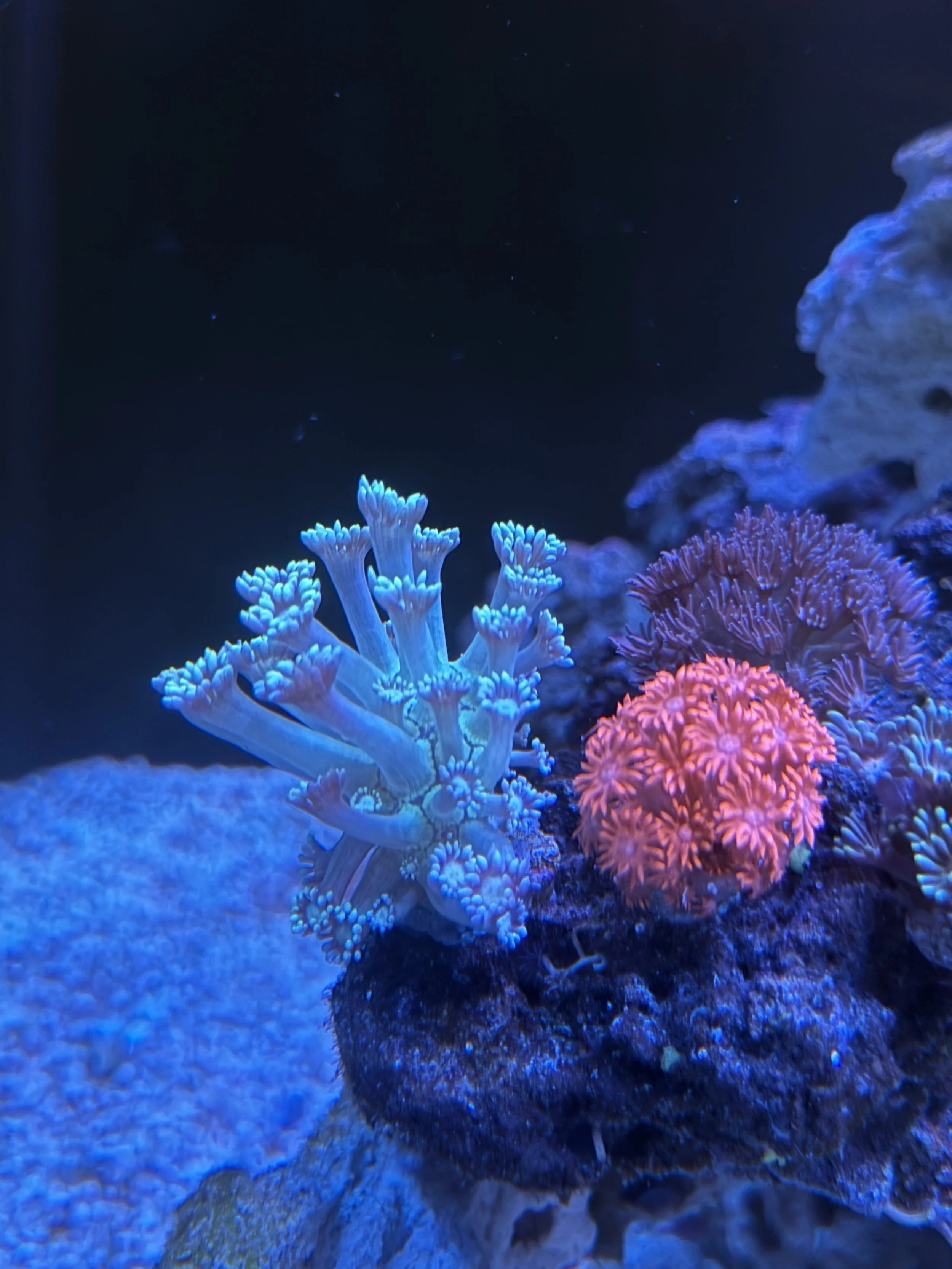 Torch coral is a hardy LPS coral with long, flowing tentacles tipped in bright colors that add motion and vibrance to reef tanks. It thrives under moderate–high light, moderate water flow, and stable water chemistry, and should be given space since its sweeper tentacles can sting nearby corals.