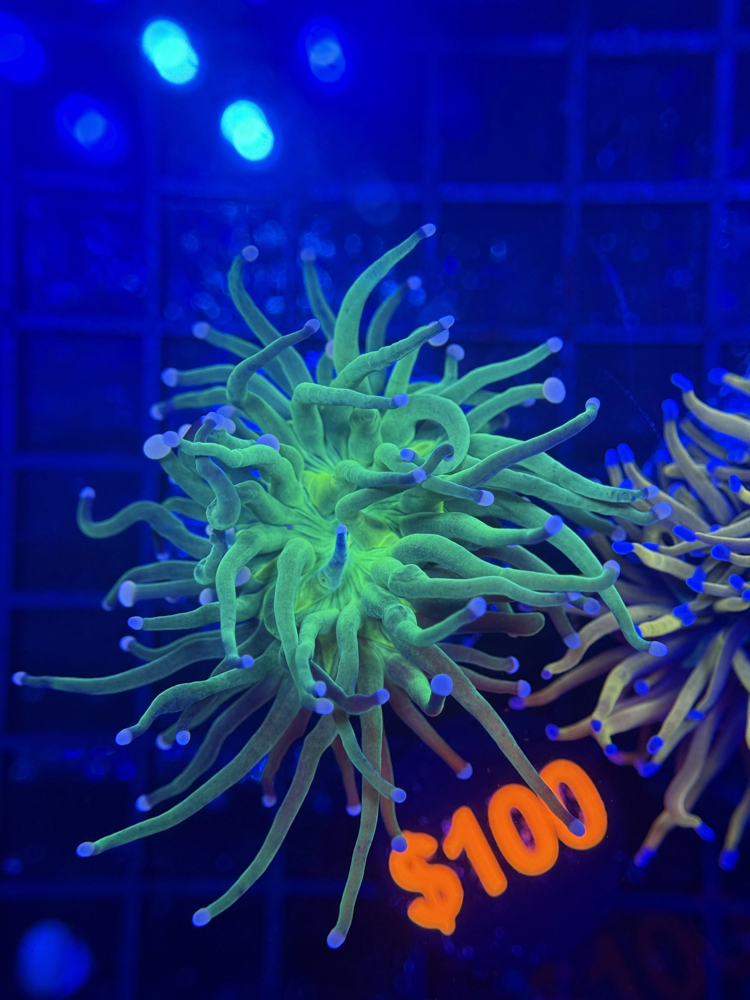 Frogspawn Coral (Euphyllia divisa) is a popular LPS coral with branching heads and tentacles tipped like frog eggs, giving it a flowing, dynamic look. It comes in shades of green, gold, and purple and thrives in moderate light and gentle to moderate flow. Give it space from other corals, as its sweeper tentacles can sting nearby colonies.